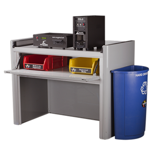 BINS Two Color-Coded Bins and Blue Recycle Container"